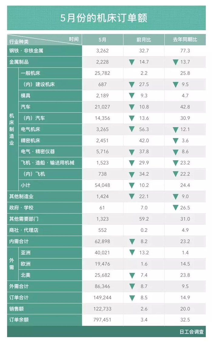 日本機(jī)床工業(yè)會(huì)(日工會(huì))6月21日發(fā)表了5月的機(jī)床訂單額。