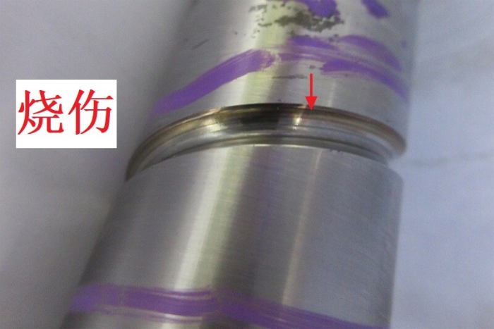 燒傷:當(dāng)螺桿受到負(fù)荷時(shí),不免產(chǎn)生磨擦力。在潤滑不足的狀況下,摩擦熱無法有效地排除,潤滑劑無法發(fā)揮正常功能,導(dǎo)致軌道面過熱呈現(xiàn)黃褐色。